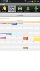 - Mensajes. Este es uno de los puntos fuertes de la aplicación móvil de Infoalu ya que se pueden ver todos los mensajes recibidos y buscar entre ellos. Además, por defecto, se activan las notificaciones una vez que el usuario se autentifica la primera vez de tal forma que cuando se recibe un mensaje en Infoalu llega una notificación al dispositivo avisando. Se puede ver el contendido de los mensajes y también descargar los archivos adjuntos aunque dependiendo del tipo que sean y de las aplicaciones instaladas en el móvil o tablet se podrán abrir o no. De momento no es posible escribir mensajes.